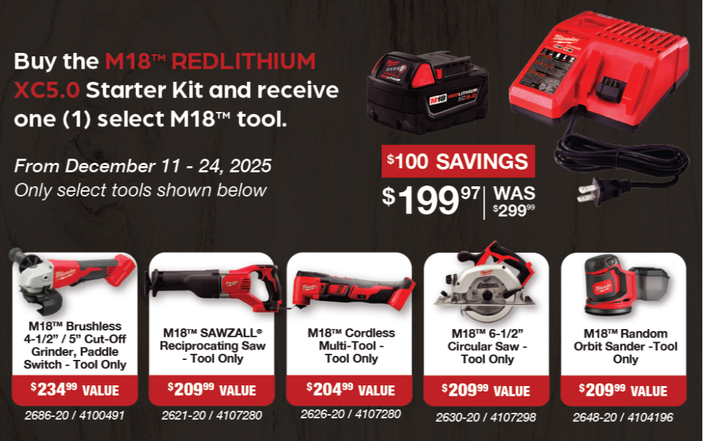 Take advantage of our Milwaukee® tool promotion(s), save $100 and get a tool for FREE!*